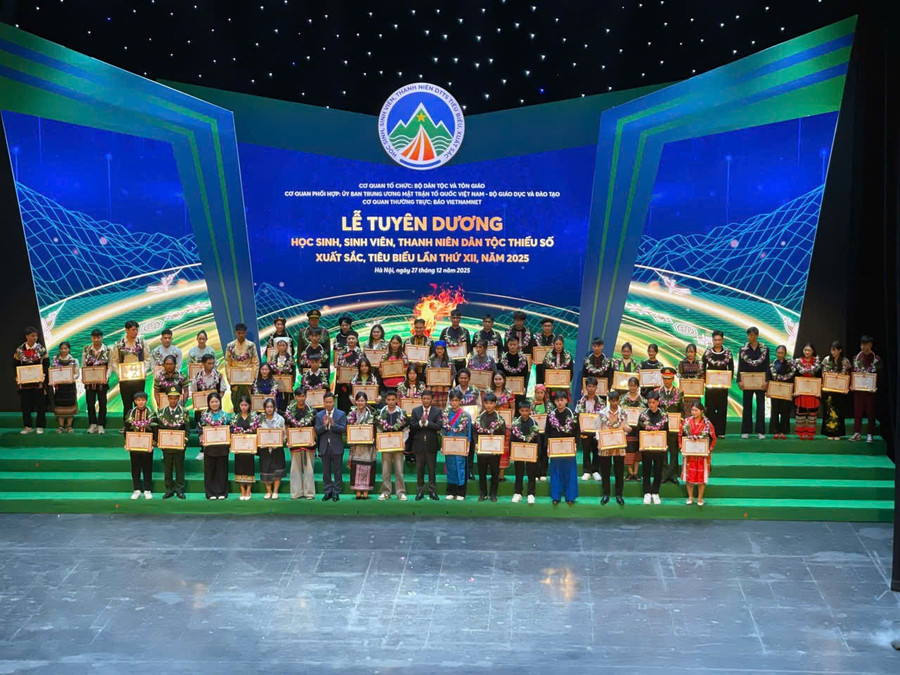 Không dừng lại ở đó, tối 27/12, tại Nhà hát Hồ Gươm (Hà Nội), Kiên tiếp tục là đại diện duy nhất của Hà Tĩnh được vinh danh tại lễ tuyên dương học sinh, sinh viên, thanh niên dân tộc thiểu số xuất sắc, tiêu biểu năm 2025. Giữa 150 gương mặt đến từ 53 dân tộc trên cả nước, cậu học trò dân tộc Chứt sinh năm 2012 mang theo niềm tự hào lặng lẽ của bản làng miền sơn cước.