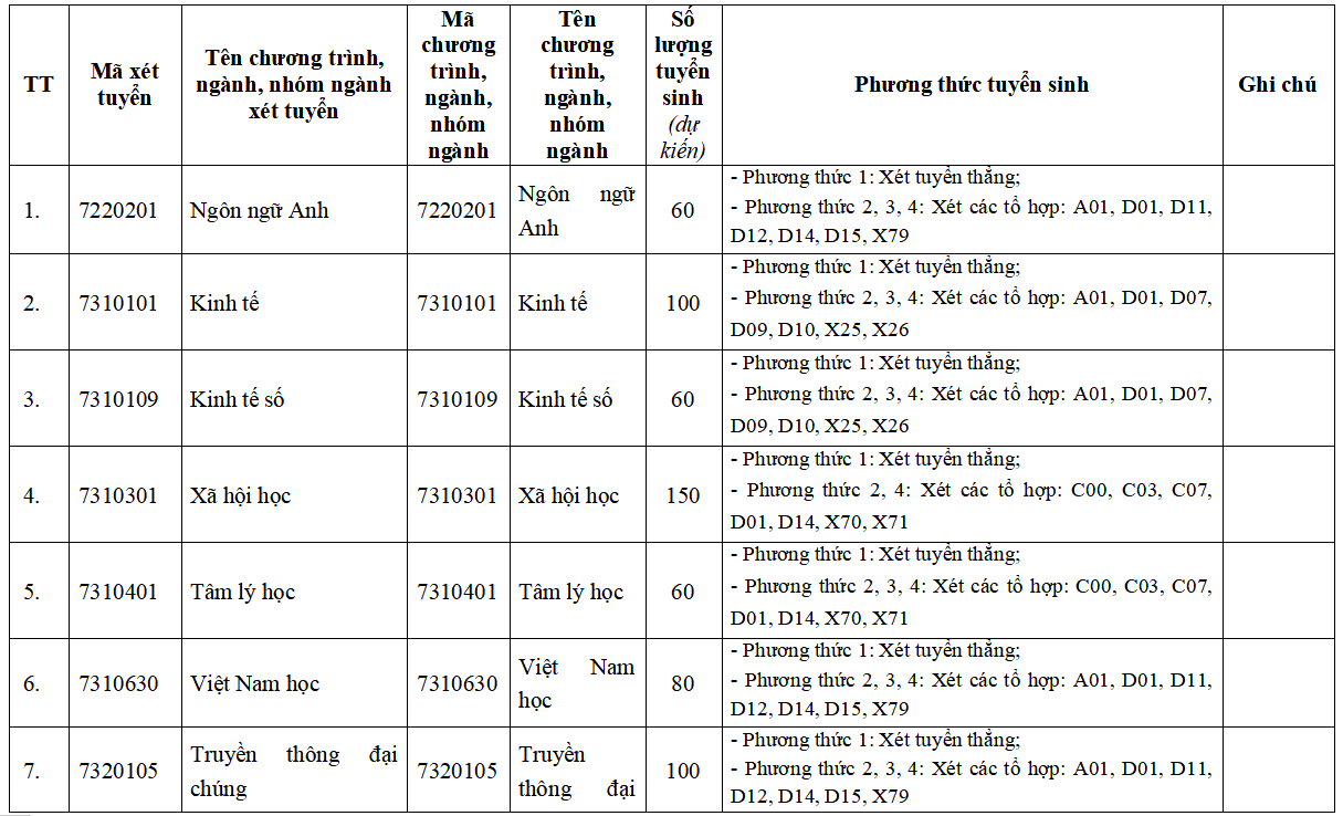 Danh sách các ngành/chương trình đào tạo của Trường ĐH Công đoàn năm 2026 cùng chỉ tiêu và phương thức tuyển sinh như sau:
