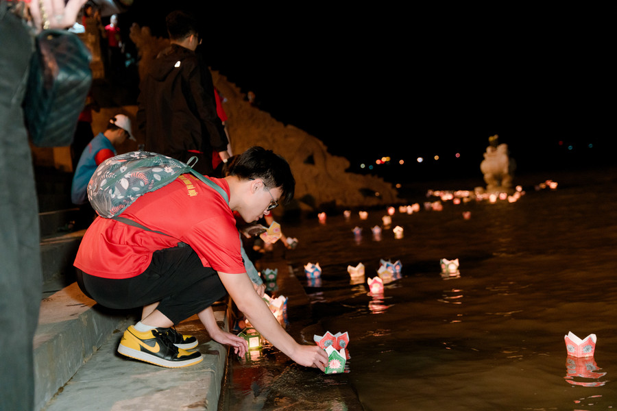 "Sông Thạch Hãn dài rộng hơn tưởng tượng của học sinh, nước chảy êm đềm làm hơn 1.200 chiếc đèn cứ lững lờ trôi, nhiều chiếc cập trở lại bến sông như bịn rịn chia tay. Có điều gì đó dường như cảm động vỗ bờ, thổn thức muốn bung ra trong lồng ngực những đứa trẻ. Người lớn thì rơm rớm nước mắt. Bộ phim Mưa đỏ hình như tái hiện trong suy nghĩ của những đứa trẻ sắp bước vào đời" - cô Văn Thùy Dương xúc động kể.