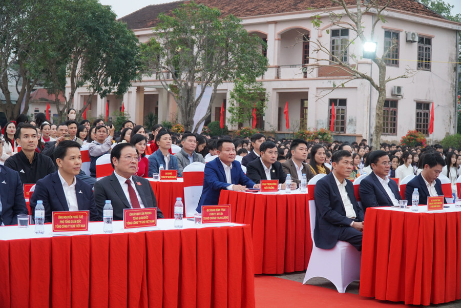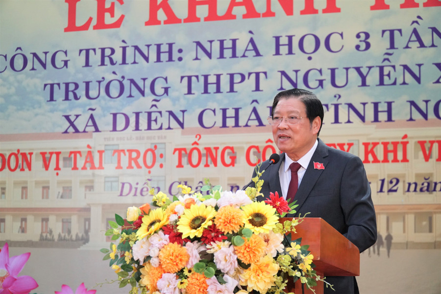 Cùng dự buổi lễ có ông Phan Đình Trạc – Ủy viên Bộ Chính trị, Bí thư Trung ương Đảng, Trưởng Ban Nội chính Trung ương; ông Thái Văn Thành, Phó Chủ tịch UBND tỉnh – Giám đốc Sở GD&ĐT Nghệ An; lãnh đạo Tổng Công ty Khí Việt Nam (PV GAS) – đơn vị tài trợ công trình cùng đông đảo học sinh, cán bộ, giáo viên Trường THPT Nguyễn Xuân Ôn.