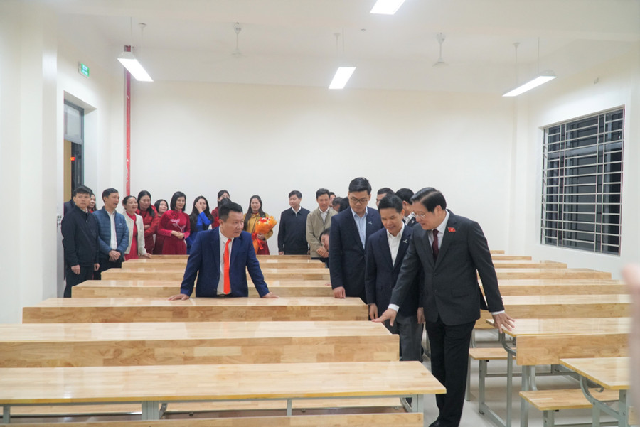 Đoàn công tác thăm cơ sở vật chất mới tại Trường THPT Nguyễn Xuân Ôn. Ảnh: Hồ Lài