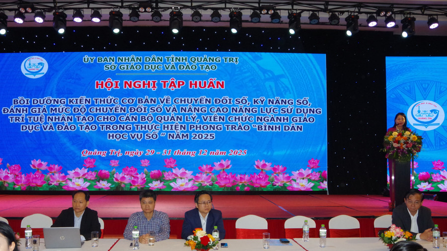 Ngày 29/12, Sở GD&ĐT tỉnh Quảng Trị khai mạc lớp tập huấn, bồi dưỡng kiến thức cơ bản về chuyển đổi số, kỹ năng số, đánh giá mức độ chuyển đổi số và nâng cao năng lực ứng dụng trí tuệ nhân tạo (AI) cho đội ngũ cán bộ quản lý, viên chức ngành Giáo dục; đồng thời triển khai đào tạo thực hiện Phong trào “Bình dân học số” năm 2025.