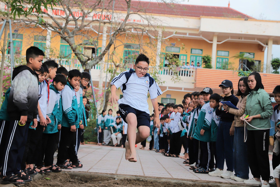Học sinh Trường THCS Hải Xuân tham gia thi đấu thể dục thể thao tại trường.