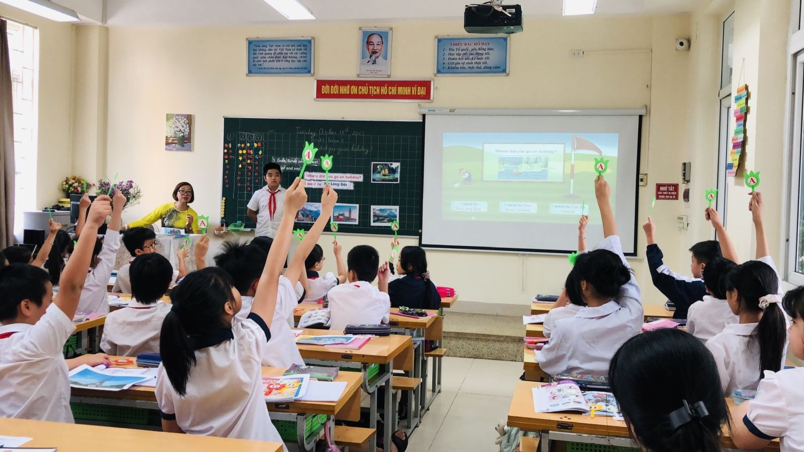Cô và trò trong giờ học tiếng Anh. (Ảnh: Trường tiểu học Trưng Vương)