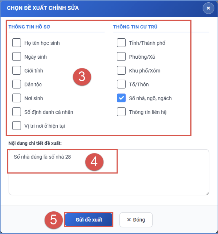Trong trường hợp có sai sót, phụ huynh phải gửi đề xuất chỉnh sửa kèm minh chứng để nhà trường cập nhật. Sau khi điều chỉnh xong, cần đăng nhập lại hệ thống để xác nhận lần cuối.