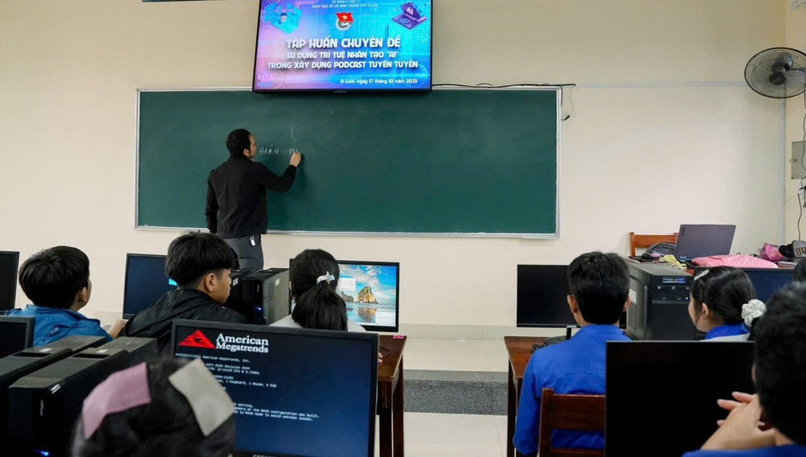 Trường THPT A Lưới (TP Huế) tập huấn chuyên đề “Sử dụng trí tuệ nhân tạo AI trong xây dựng podcast tuyên truyền” cho học sinh. Ảnh: NTCC